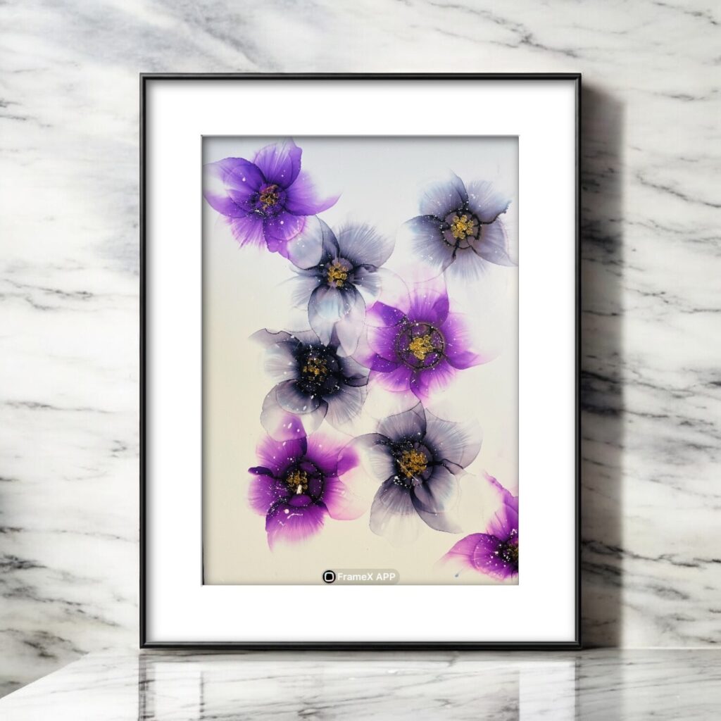 アルコールインクアートは様々なテクスチャ素材や技法によって、違う印象を見せてくれます。