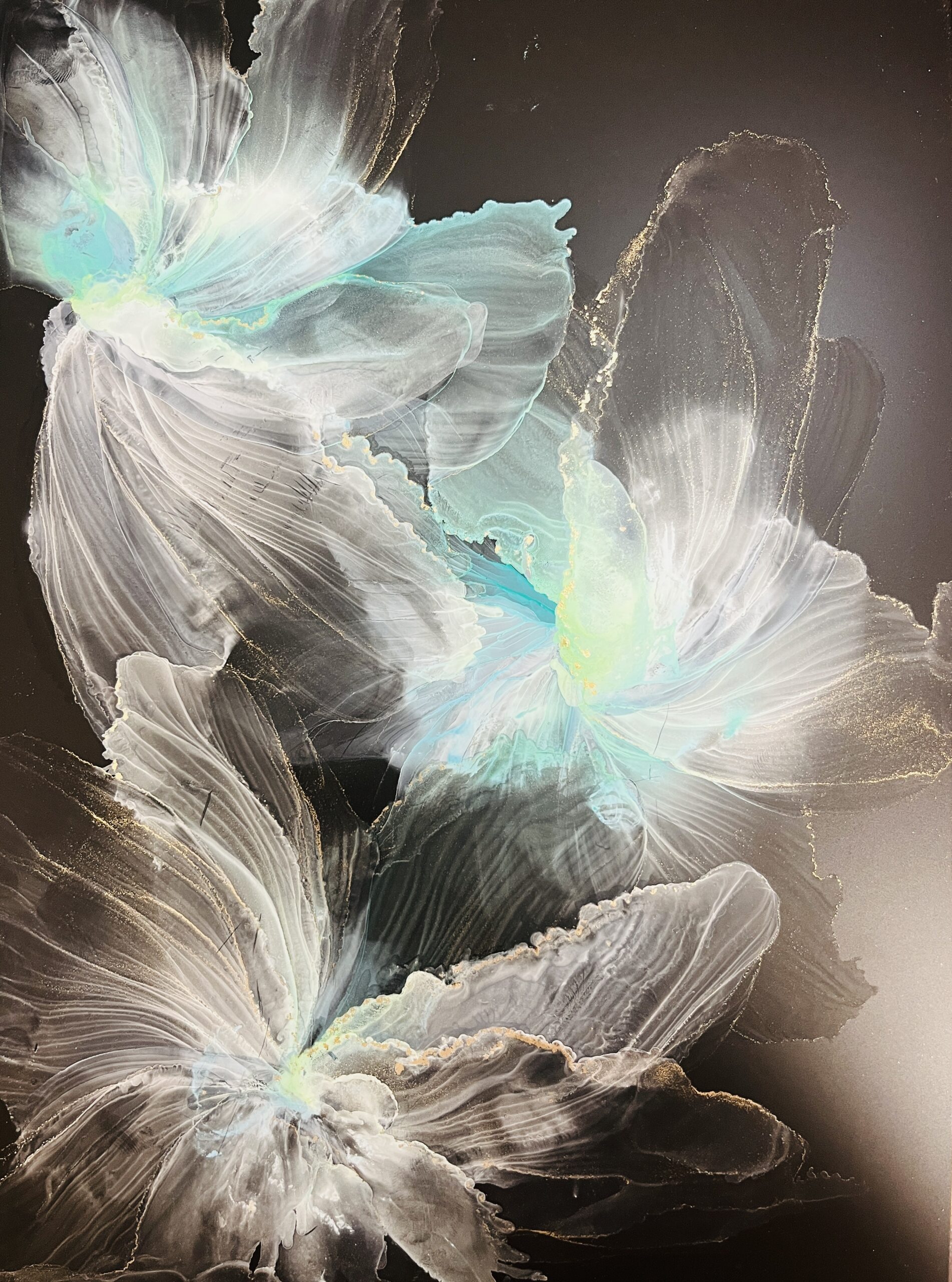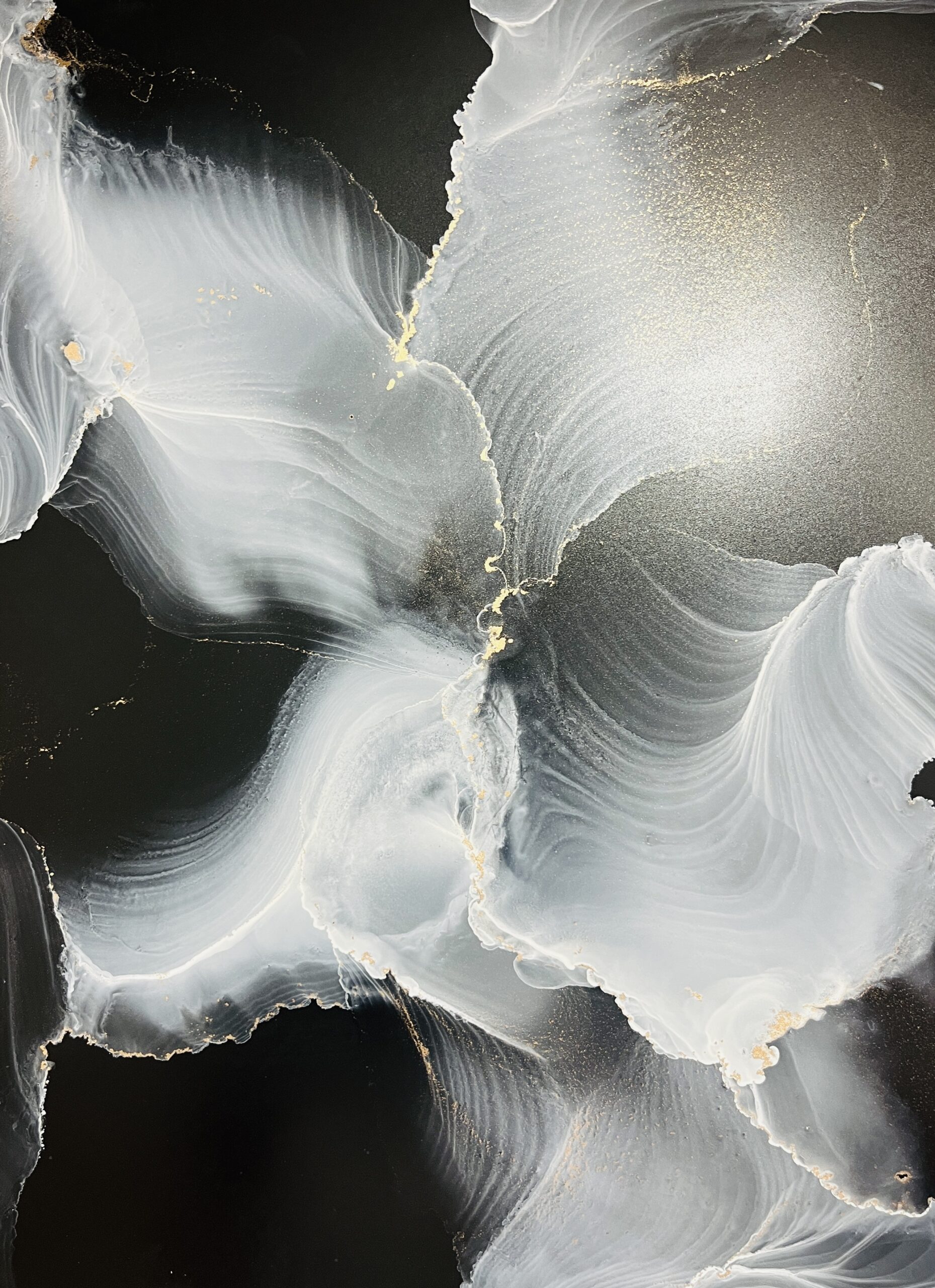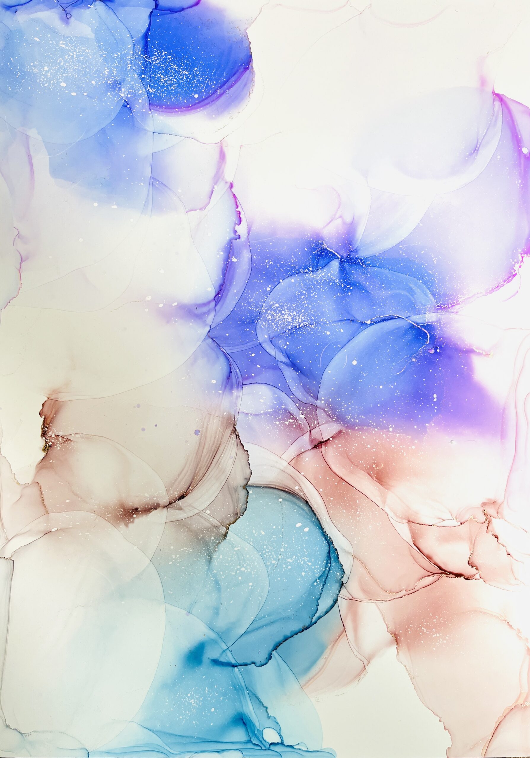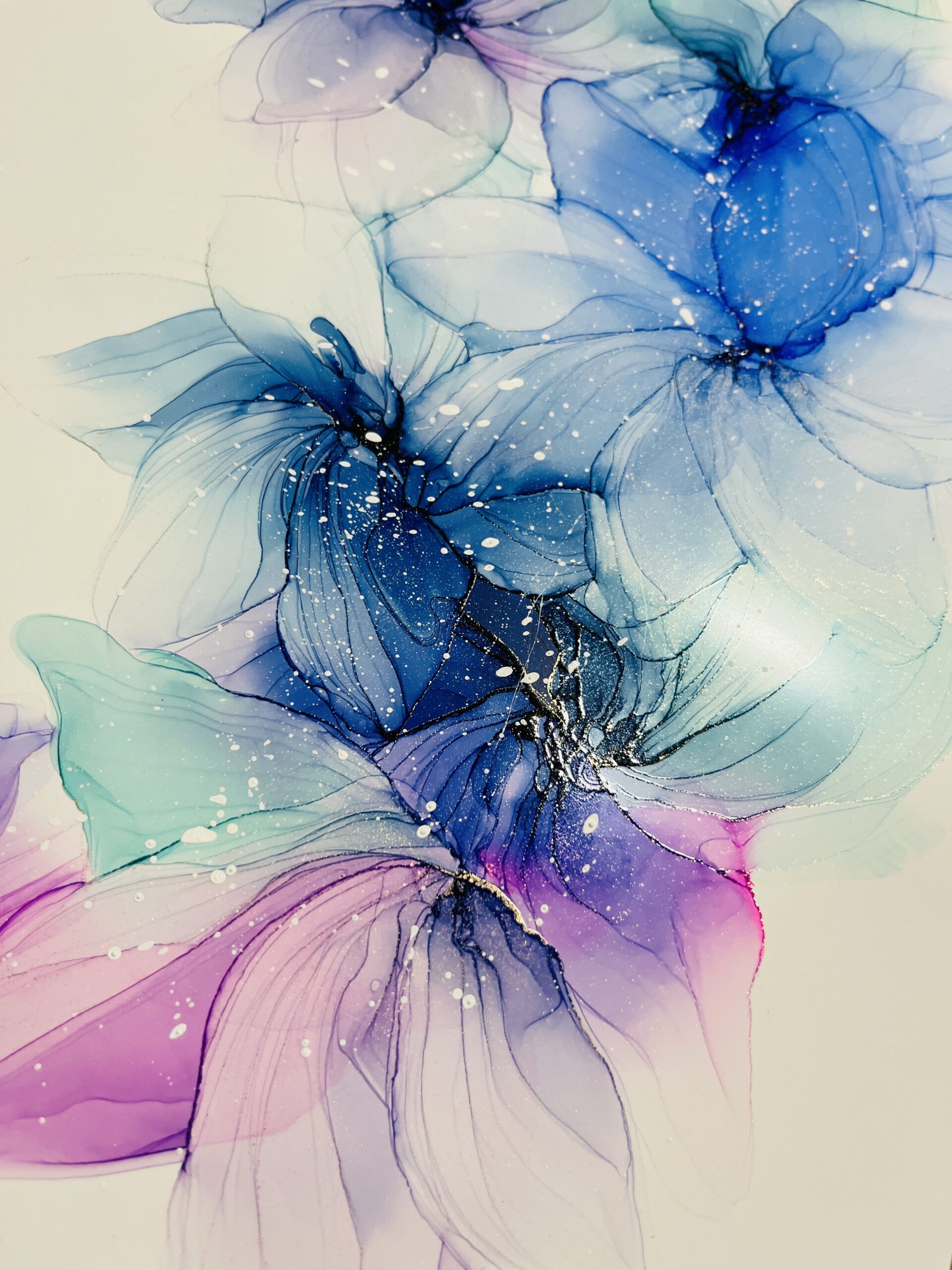 アルコールインクアートは、風や流れ、偶然が生み出すアート。絵が得意でなくても大丈夫。
